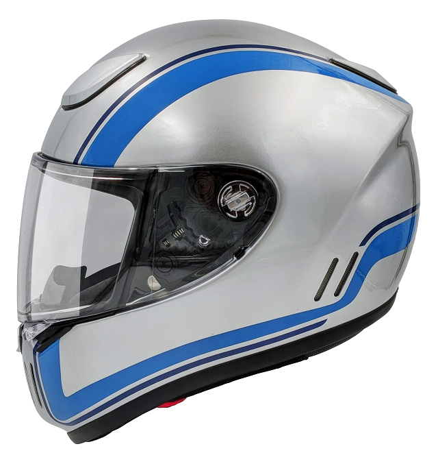 この度100個限定モデルとしてシルバーとブルーを基調とした新色【アークブルー(ArcBlue)】を設定いたしました。鮮やかなメタリックシルバーのボディに、2つのトーンのブルーのラインが弧を描くように配置されています。現行グラフィックモデルのデザインをモチーフに、更にシンプル且つヘルメットの造詣を引き立たせるデザインに仕上げました。国内ペイントプロショップによってひとつひとつハンドメイドで仕上げた一品です。