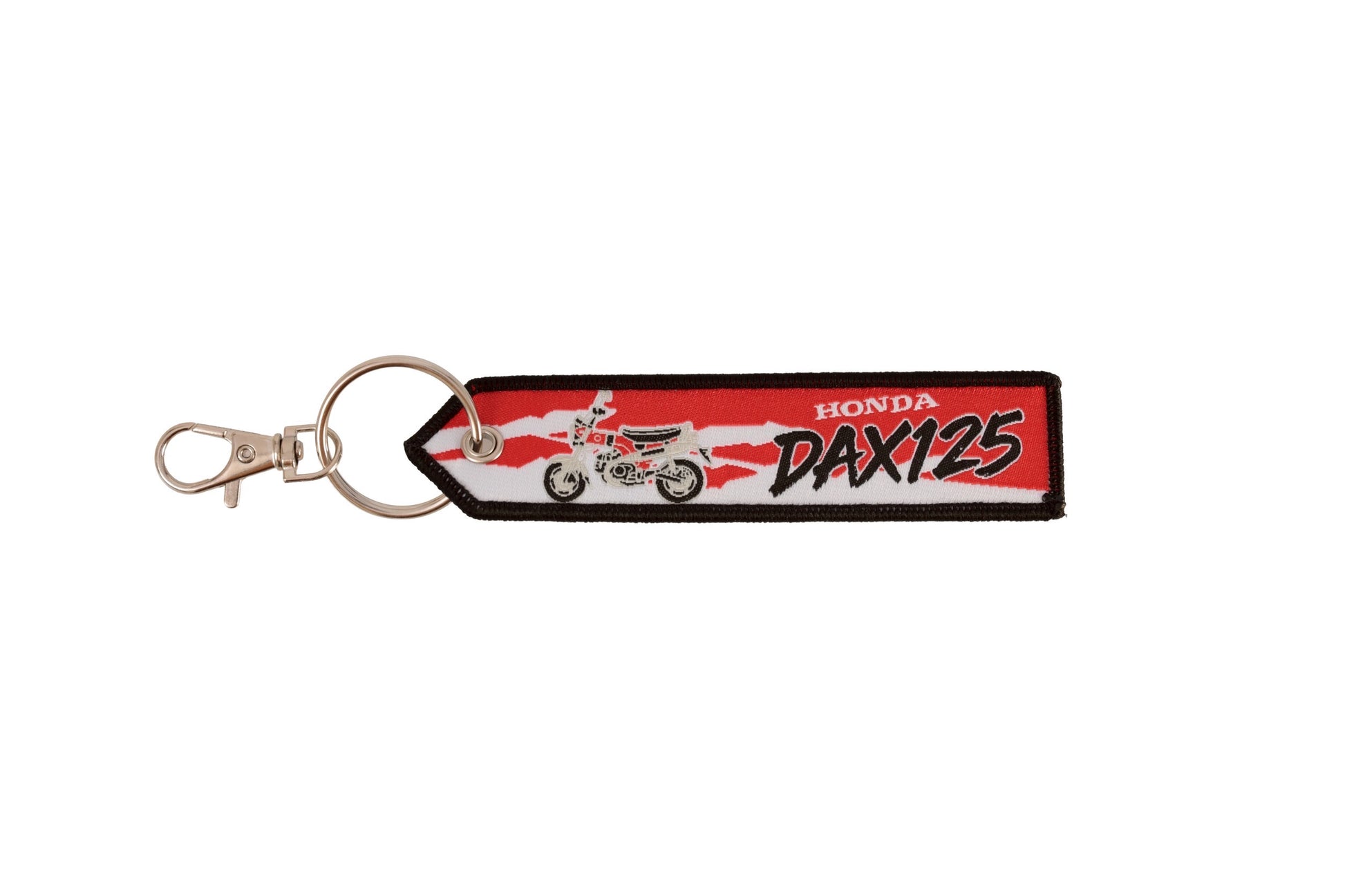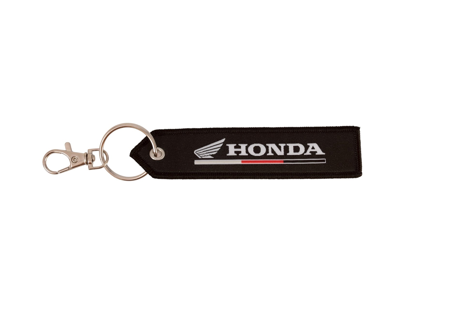背景は二輪車のスピード感をイメージ。各車体カラーに合わせてパッと目を惹くデザインに仕上げました。裏面はブラックをベースに、ロゴ下ラインでは車体カラーとリンクさせてみました。回転カンの金具付きで、着脱も簡単にご使用いただけます。