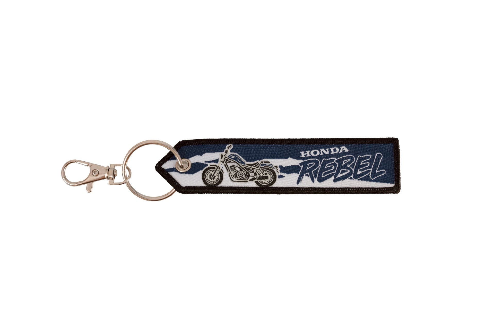 背景は二輪車のスピード感をイメージ。各車体カラーに合わせてパッと目を惹くデザインに仕上げました。裏面はブラックをベースに、ロゴ下ラインでは車体カラーとリンクさせてみました。回転カンの金具付きで、着脱も簡単にご使用いただけます。